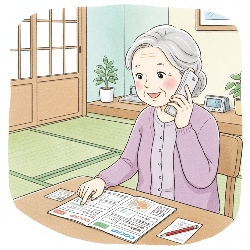 これらを、オペレーターさんと直接お話ししながら注文できます。機械的な音声ガイダンスではなく、人の声で対応してもらえるのは、高齢者にとって大きな安心材料です。